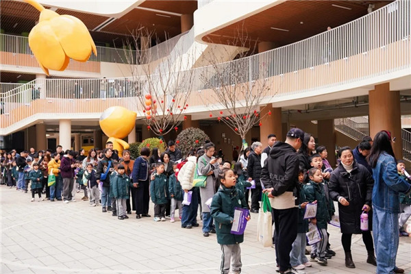 循着诗意的指引,学生与家长手持“游园打卡地图”,前往各学科体验点位集章探趣。