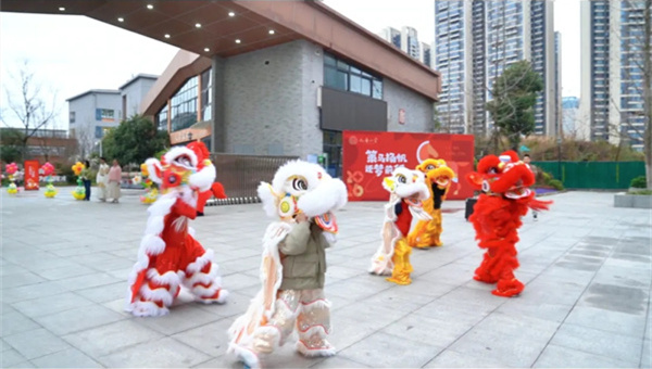 舞龙舞狮精彩亮相。金龙翻腾起舞,瑞狮灵动欢跃,锣鼓声声振奋人心。同学们驻足观看、欢呼喝彩,在热闹喜庆的氛围里感受传统文化魅力,以昂扬向上的姿态,开启元气满满的新学期。