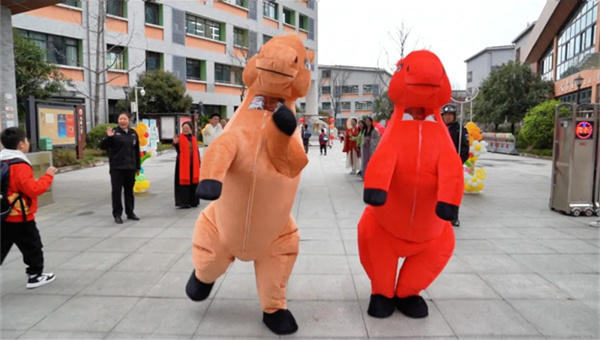 校门广场上,可爱的小马玩偶伴着欢快的新年音乐,热情地向每一位学子挥手致意。温暖的问候、暖心的拥抱,瞬间拉近了彼此的距离,驱散了孩子们的陌生与拘谨。温馨欢乐的氛围扑面而来,让整个返校之路充满温情与惊喜,也为新学期拉开了美好序幕。
