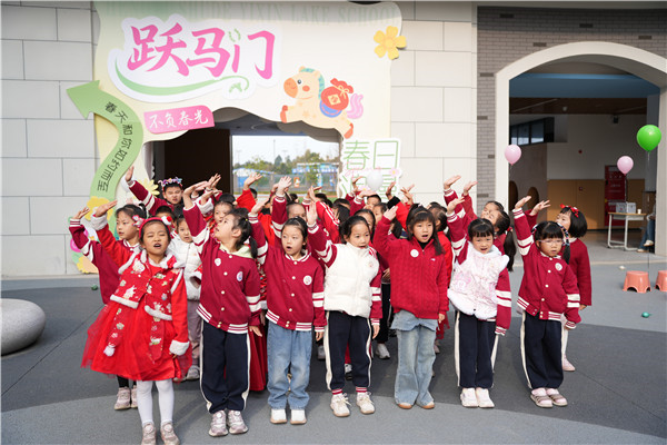 清晨7时30分,学子们入校,依次触摸校门口悬挂的马铃、马头、马蹄、马尾图案展板带来好的寓意。进入班级后,学生们戴上个人姓名的专属贴纸,在细节中感受校园的用心与温情。