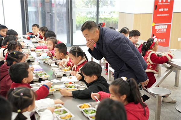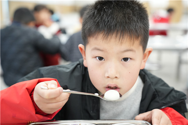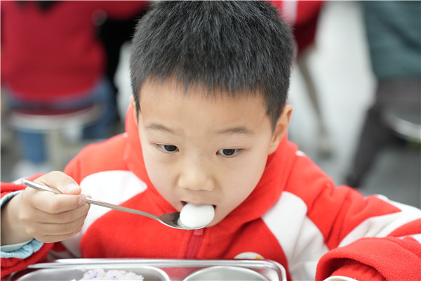 为让学子们感受团圆温馨的开学氛围,中午,学校食堂为全体学子准备了香甜的汤圆午餐,餐桶上张贴的手写福字暖意十足。