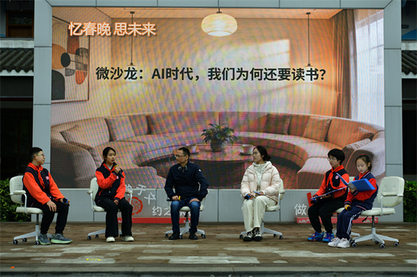 在AI技术飞速发展的当下,“我们为什么要读书?”成为孩子们心中的困惑,也成为本次开学典礼的核心探讨话题。学校特别设置访谈环节,邀请陈校长、科学老师与学生代表围绕“AI时代我们为什么要读书”展开深入交流。