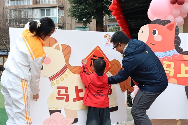 温江区实验幼儿园园长孙城与幼儿代表共同完成了六幅骏马主题拼图。拼图完成后,孙城结合图片内容,为全体师幼送上了新学期的真挚祝福,寄语孩子们“马上博学、马上没烦恼、马上成功、马上长高、马上聪明、马上有福”,祝愿大家在新的一年里健康快乐、茁壮成长。