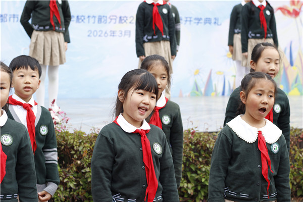 国歌嘹亮,校歌悠扬。升旗仪式后,全体师生齐声唱响校歌,熟悉的旋律在校园里回荡,唱出了熊猫路小学学子的精神风貌,也凝聚起全体师生同心同行、共赴新程的力量。