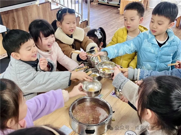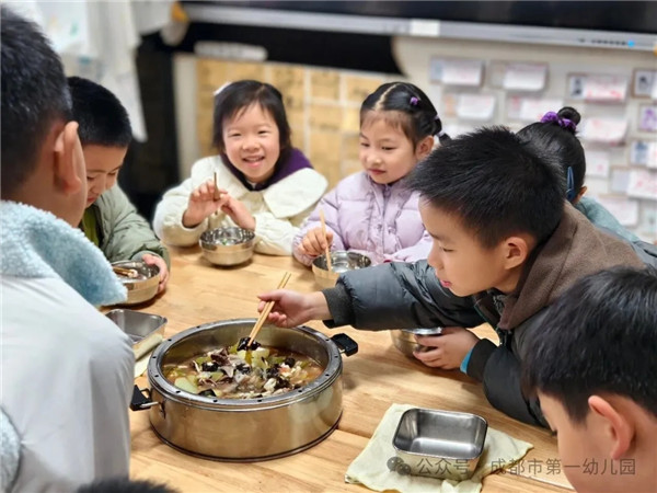 当欢声笑语渐息,另一份属于舌尖的“圆满”正热气腾腾地扑上心头,食堂的叔叔阿姨早已用心备好了健康营养的火锅食材。午时,教室里一张张桌子被拼凑起来,一宝们围坐在四周,搓着小手等待美味的到来。