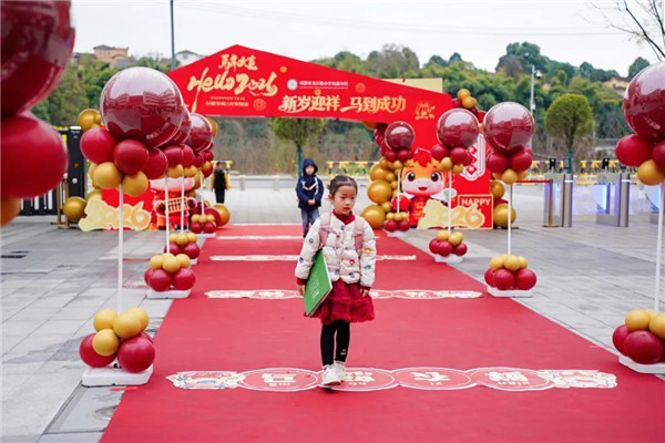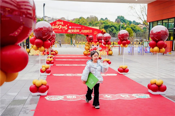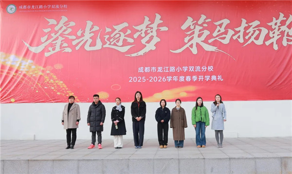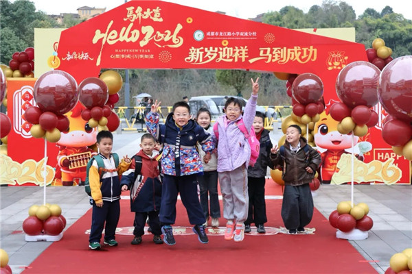 3月1日,春季开学报到日,成都市龙江路小学双流分校一排排马年祝福铺就地面,孩子们在校歌《春风化雨》节拍中蹦跳着跨过,定格成开学第一帧温暖。老师们笑盈盈地迎接回家的每一个龙娃娃。