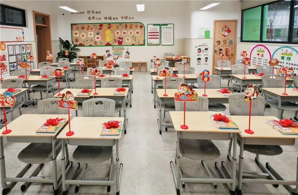 教室里,形状各异的马形立牌俏皮招手,崭新的课本静静等待,孩子们在心愿卡上写下春天里最纯真的梦。