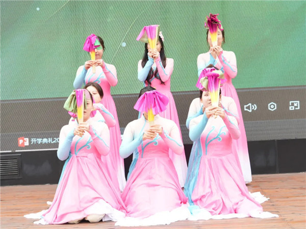 “好一朵美丽的茉莉花,芬芳美丽满枝桠。”教师舞蹈队身着雅致服饰,带来经典舞蹈《茉莉花》。