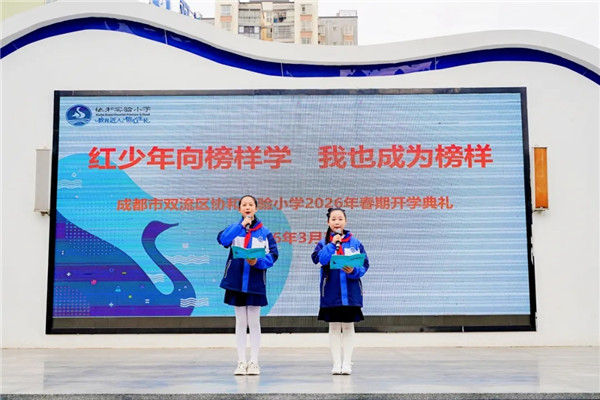 春风送暖启新程,榜样引领向未来。3月2日上午,成都市双流区协和实验小学全体师生齐聚校园操场,举行2026年春季学期开学典礼。本次活动以“向雷锋榜样学习,争做红色榜样少年”为主题,将红色精神与成长志向相融,开启了充满力量与希望的新学期篇章。