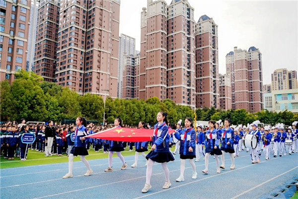 开学典礼在庄严的升旗仪式中正式拉开帷幕。全体师生肃立注目,鲜艳的五星红旗迎着春风冉冉升起,嘹亮的国歌声响彻整个校园,浓浓的爱国情怀在每个人心中悄然升腾。红领巾鼓号队以铿锵有力的节奏、昂扬饱满的姿态奏响乐章,为开学典礼注入蓬勃向上的青春力量。