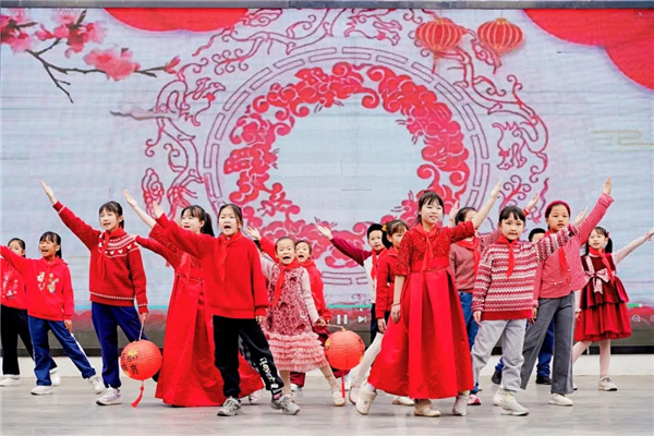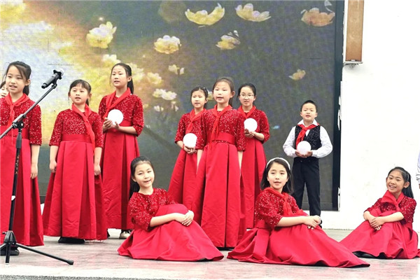 国旗下,精彩的文艺演出轮番登场,用艺术传递榜样力量。主持校队带来朗诵《窗花里剪出个大中华》,字字真挚、句句深情,以灵动的表达诠释深厚家国情怀;合唱校队温情演唱《萱草花》,让奉献、友爱、温暖的种子在每一位同学心中生根发芽,精彩的表演赢得全场师生热烈掌声。