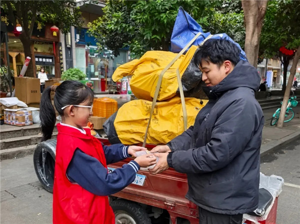 在快递分拣站,队员将元宵递到忙碌的快递员手中,向快递员叔叔、阿姨道一声辛苦,也送上节日的美好祝愿;楼栋院落间,环卫工人们正忙着清扫路面,队员贴心地递上元宵,送出心中的敬意与慰问;社区的独居老人家门前,队员送上热气腾腾的元宵,陪老人唠家常、说祝福,为独居老人的节日增添别样的温馨;小区安保岗亭内,队员向值守的保安叔叔敬标准队礼,送上元宵与祝福,了解他们守护社区平安的坚守,懂得了“责任”与“奉献”的意义。