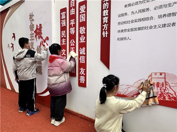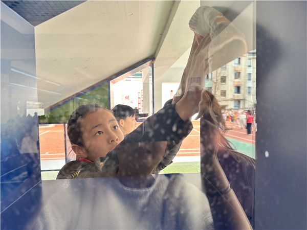 活动中,高年级少先队员主动结对低年级小同学,走进教室开展互助清洁。大家分工明确、互帮互助,认真整理课桌、清扫地面、擦拭门窗与黑板,高年级队员耐心指导、细心协助,在劳动中传递温暖与责任,让团结友爱的氛围充满每一间教室。