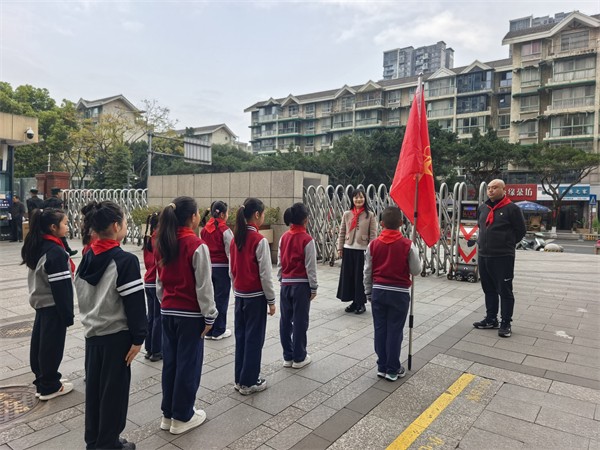 活动伊始,全体队员身着整洁服装,统一佩戴红领巾与志愿标识,在学校门口整队集合后,步行前往社区活动场所。抵达现场后,主持人向同学们强调了本次活动的意义与安全要求,叮嘱大家牢记“安全第一、服从指挥、团结协作、文明服务”的准则,以饱满的热情和认真的态度完成志愿服务任务。