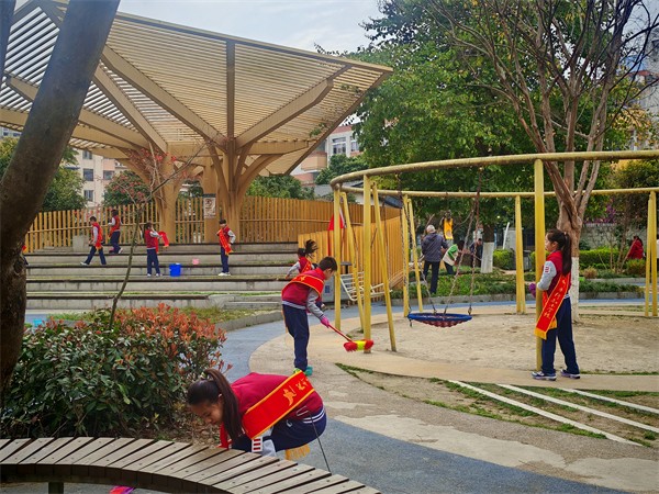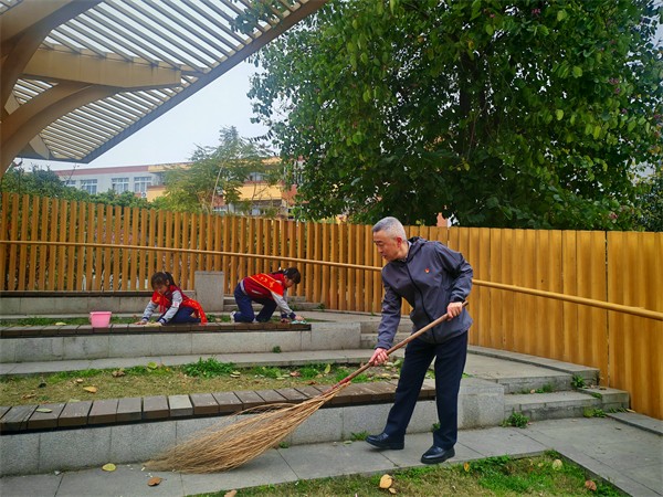 宣誓结束后,志愿服务正式拉开帷幕。党员志愿者、队员们迅速投入到清洁工作中,手持扫把、垃圾袋、抹布等工具,分工协作、互相配合,认真清理公园路面、草坪、花坛内的纸屑、塑料袋、烟头等各类垃圾,仔细擦拭公园座椅、宣传栏、扶手等公共设施。劳动过程中,大家不怕苦、不怕累、不怕脏,个个干劲十足,不放过任何一个卫生死角,成为公园里一道亮丽的风景线。