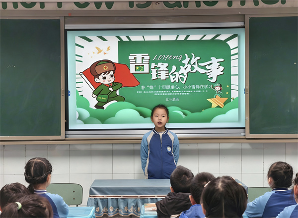 在“雷锋故事我来讲”活动中,一、二年级学生自主搜集雷锋事迹,在班级分享会上倾情讲述。专注的眼神、生动的表达,让雷锋精神如春风化雨,悄然浸润童心。一颗颗奉献与关爱的种子,正在讲述与聆听中生根发芽。