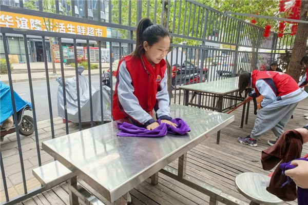 学雷锋,不止于言语,更在于行动。放下慰问品,孩子们立刻化身“小小志愿者”,撸起袖子、拿起工具,开启了志愿服务。扫地、擦椅子,孩子们分工协作、认真细致,不放过任何一个卫生死角。
