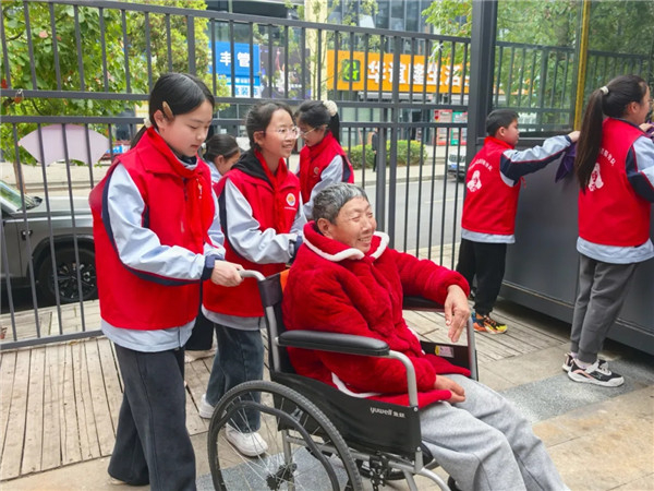 中午,小小志愿者们在德育处集合完毕,带着精心准备的牛奶、新鲜水果等慰问品,向着敬老院出发,一场温暖的双向奔赴就此开启。