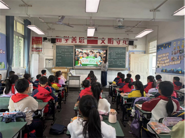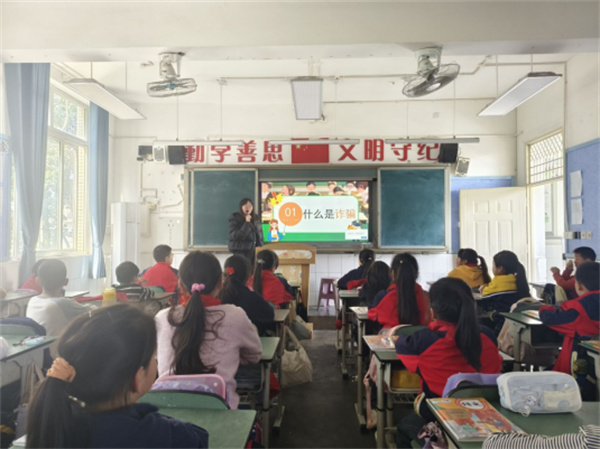 为切实提升师生识骗、防骗、拒骗能力,筑牢校园安全防线,3月4日,大邑县王泗镇学校分班开展反诈进校园主题班会教育活动。