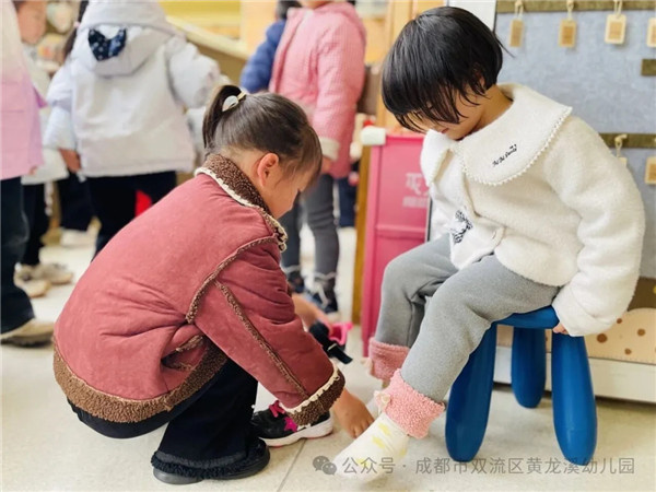 作为幼儿园的大哥哥大姐姐,他们主动化身“小老师”“小帮手”。来到小班,耐心地帮弟弟妹妹整理书包、系鞋带、拉拉链;手把手教他们叠衣服、收纳玩具。