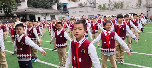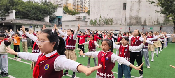 锦里小学,师生以八段锦强健体魄,以中医药文化浸润心灵