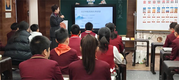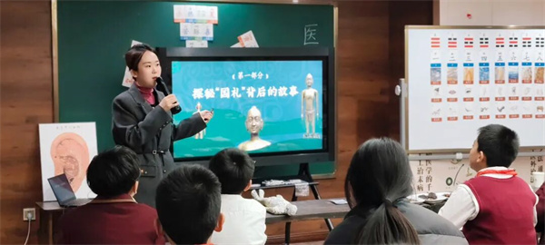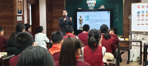 大课间功法展示结束后,李慧老师在少年中医学堂内给同学们带来了一堂生动有趣的中医药活动课《探秘祖国传统医学——从针灸铜人到春季养生》。课堂内容丰富、层层递进,让孩子们在趣味互动中走近中医、爱上中医。
