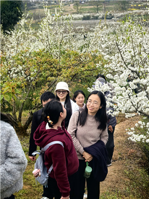 活动中,老师们结伴而行,漫步在春日的彭州郊野,欣赏着漫山的李花与金黄的油菜花,感受着大自然的生机与活力。大家用手机和相机定格下一幅幅春日盛景,记录下彭州葛仙山的秀美风光与团队的温馨瞬间。在轻松惬意的氛围里,大家边走边聊,畅谈工作心得、分享生活趣事,在欢声笑语中卸下了教学工作的疲惫,拉近了彼此的距离。