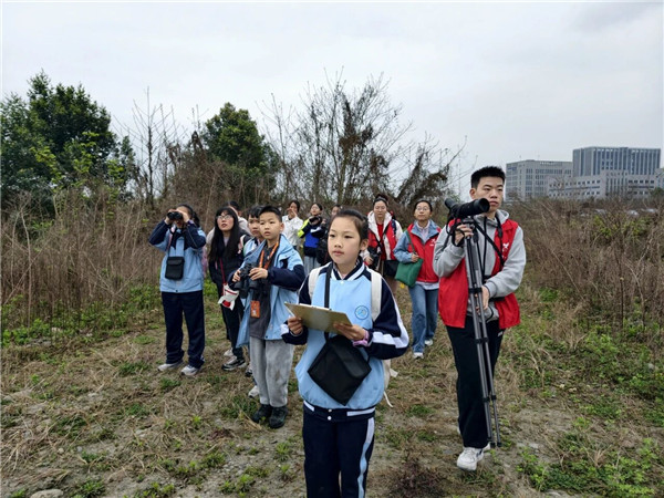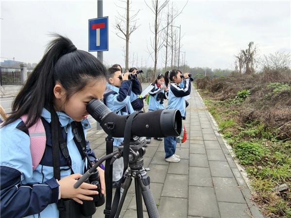 3月8日,成都师范学院附属实验学校(以下简称:成师附校)第138学生科考队来到温江杨柳河金马段、新春村等地,开展2026年春季野生鸟类调查活动。