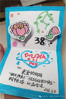 春意渐浓,暖意融融。为庆祝第116个“三八”国际妇女节,培养学生的感恩意识,成都市郫都区两路口学校组织开展了以“妇女节,我这样做——用行动说爱您”为主题的教育活动,引导孩子们用自己的方式,向妈妈、奶奶、外婆等女性长辈表达爱与感谢。