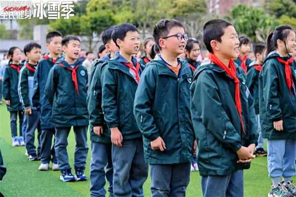 活动现场,全校师生以热烈掌声迎接四川省冰雪运动协会、成都雪乐山滑雪俱乐部的专业教练团队。少先队员代表登台为嘉宾佩戴红领巾,以最真挚的方式表达敬意,庄重又温暖的瞬间,为本次冰雪活动拉开美好序幕。