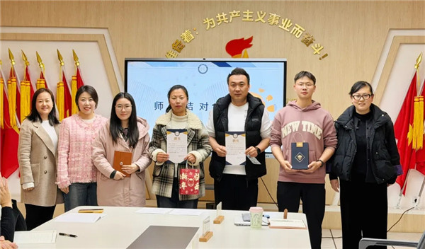 活动在温馨而庄重的师徒结对仪式中拉开帷幕。伏琦老师与付超老师、刘倩老师与汪丽老师作为师徒代表,签订结对协议,互赠礼物,许下成长之约。