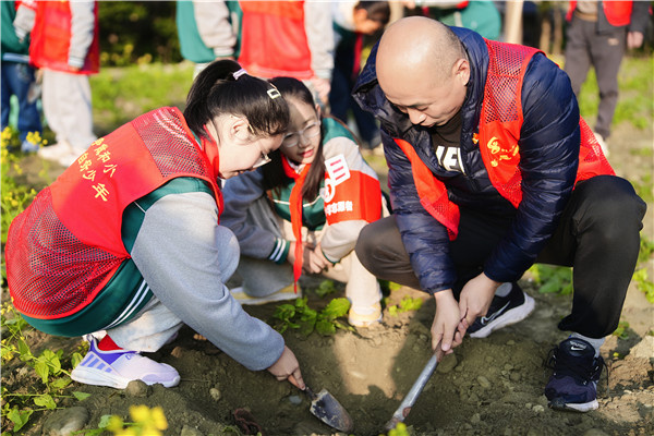 一锹土,种下的是树苗,也是希望;一桶水,浇灌的是土壤,也是未来。携手同心,从身边小事做起,守护绿水青山,共建美丽家园,让“桃李”在春光中茁壮成长,让希望在新绿中绽放!(张红)