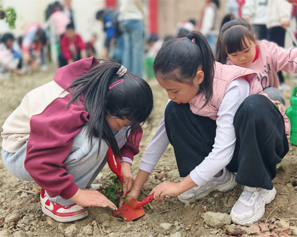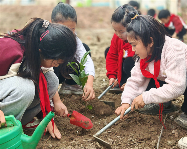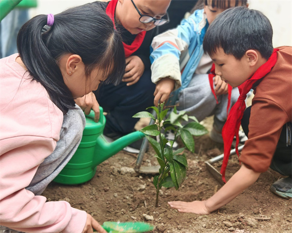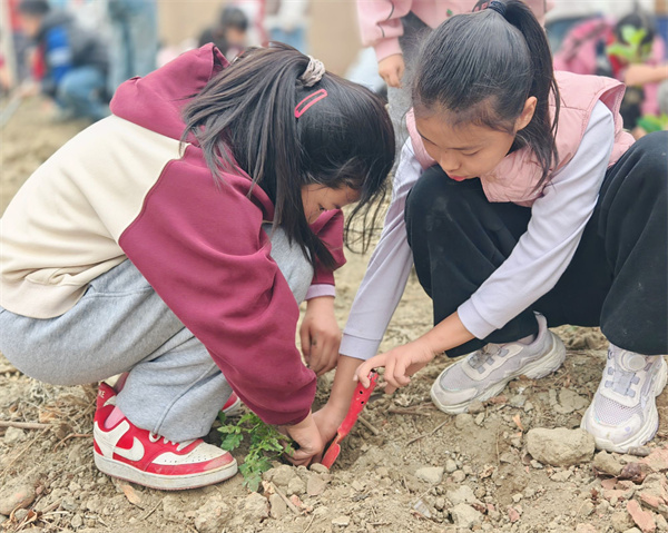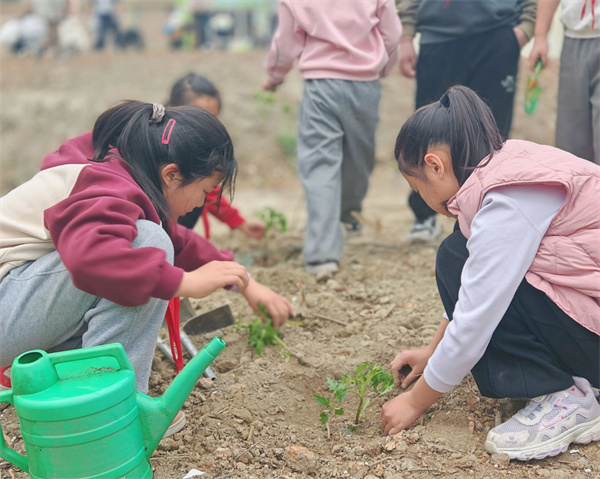 三年级1班的同学们踊跃参与,化身可爱的“小小园丁”,用双手为春天添上一抹新绿!在老师的带领下,孩子们来到学校美心田园基地,分工协作、有条不紊。挖坑扶苗、填土浇水、松土种植,每一个步骤都认真又专注。孩子们忙碌的身影,与迎风挺立的小树苗、小菜苗相映成趣,构成了校园里最动人的春日画面。