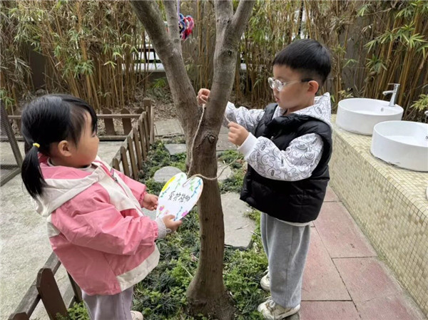为小树挂牌,为绿色许愿。孩子们亲手制作爱心护绿牌,认真写下爱护植物的温馨话语,轻轻挂在树枝上。小小的牌子,是守护绿色的承诺,提醒大家爱护花草树木,让校园处处充满生机与温暖。