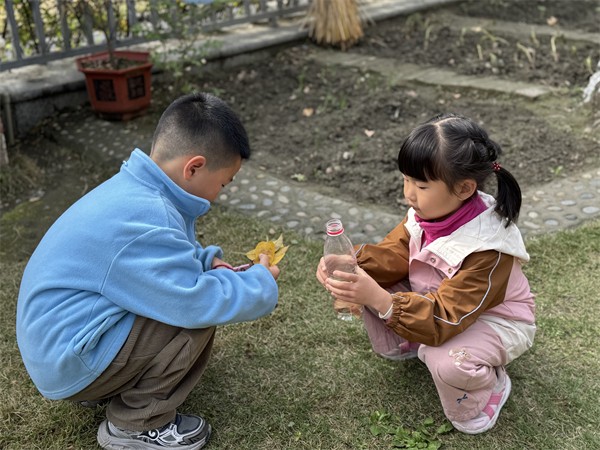 中班幼儿开启树叶探秘之旅,捡树叶、观察叶脉,用画笔勾勒心中的绿树,还收集落叶、果皮制作沤肥,解锁“变废为宝”的环保知识,在班级种植园里与爸爸妈妈共同种下小植物,体验劳动的乐趣与成就感。