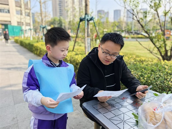 大班的哥哥姐姐们化身“植绿小能手”,制作创意树叶书签、绘制绿植宣传画,用巧思传递绿色理念,还拿起尺子测量树木的高矮、粗细,在趣味数学游戏中收获树木小知识,在实践中学会责任与担当。