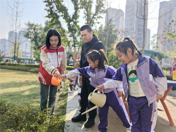 近日,成都市温江区政通幼儿园开展了形式多样的植树节系列植绿护绿活动。孩子们化身护绿小卫士,在亲身体验中播撒绿色希望,将环保理念深植心间,与家长、社区携手绘就春日植绿美好画卷。