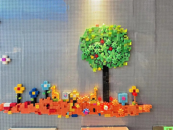 有的设计挺拔的松树,有的拼出充满童趣的果树,大家互相交流灵感,让一面面乐高墙变成了充满生机的“森林”。在小小的积木之间,孩子们种下了创意的种子,也展现了丰富的想象力与动手能力。