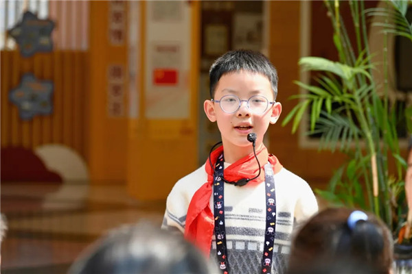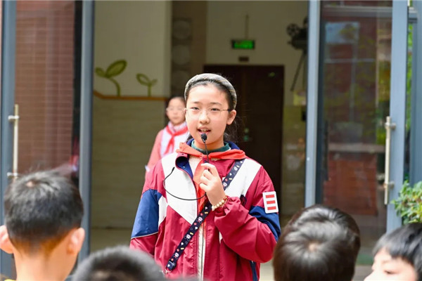 对于一年级的弟弟妹妹来说,这是一个特别的时刻。大队委的哥哥姐姐们在“樱桃园”用讲故事的形式讲述“樱桃的故事”。