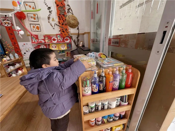 早上来园时,宝贝们会主动向老师问好,并将自己的小书包整齐地塞进专属柜子,还会认真对齐柜子上的小卡通贴。这些看似微不足道的小细节,实则是在帮助孩子们建立对环境的可控感,让他们在熟悉的环境中感到更加安心。