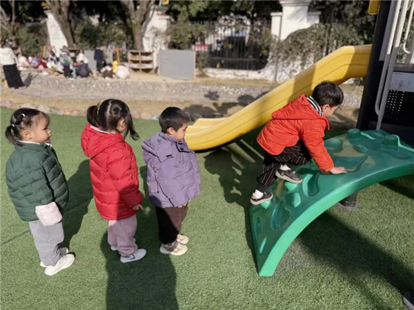 户外活动时,宝贝们一个接着一个组成“小火车”排队出发,玩滑梯时也会自觉地喊出“你先玩,我等你”。这些有序的规则不仅避免了安全隐患,更让孩子们在社交中学会了尊重他人和耐心等待。