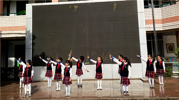 轻快的旋律响起,同学们带来手势舞《小小植树家》。
