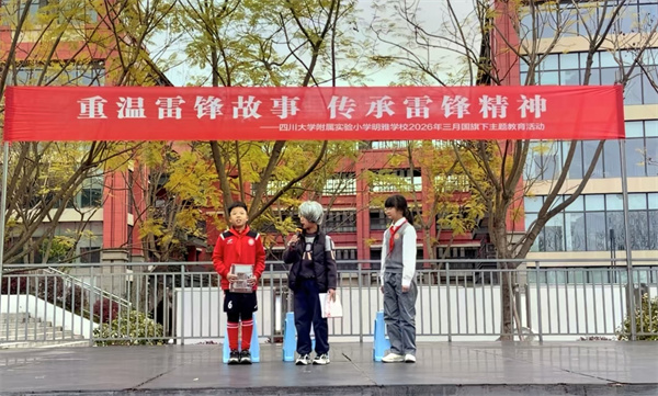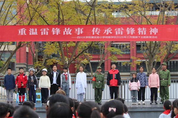 为弘扬雷锋精神,厚植校园德育底色,3月16日上午,四川大学附属实验小学明雅学校举行“重温雷锋故事,传承雷锋精神”国旗下主题教育活动。本次活动由五(1)中队承办。
