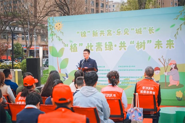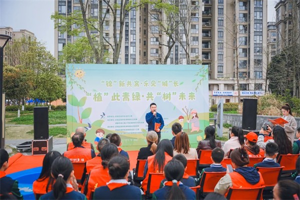 活动伊始,簇桥街道智慧蓉城运行中心主任罗涛登台致辞,他强调,植树节志愿服务活动是家校社协同育人的鲜活载体,希望孩子们在劳动中感悟生命、在实践中学会担当,也期待“五老”志愿者继续发挥余热,大手牵小手,共同为美丽街区播撒绿色、守护未来。