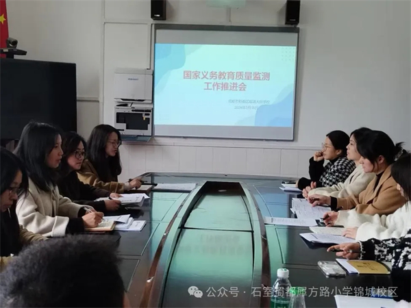 为扎实推进义务教育优质均衡发展迎检工作,聚焦学生发展,提升学校教育教学质量,3月16日,成都石室蜀都犀方路小学(锦城校区)召开了义务教育质量监测工作推进会。学校行政和四年级全体教师参与了此次会议。