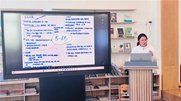 各组保育老师结合幼儿日常表现,分享了小、中、大班在健康生活14项内容中的真实场景,通过“保育实践+理论解读”的形式,老师们清晰地认识了各年龄段的学习内容与目标,知道了要培养什么样的孩子,进一步厘清了能力培养与习惯养成的内在关联,为后续策略制定奠定实践基础。