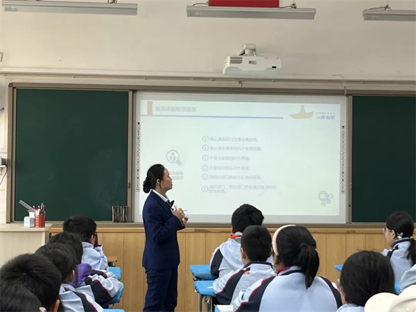 活动现场,银行工作人员结合典型案例,用贴近学生生活的语言向同学们讲解了电信诈骗的常见形式、作案手法及防范技巧。通过互动问答等方式,重点介绍了冒充公检法、网络刷单、虚假中奖等高发诈骗类型,提醒同学们要做到“不轻信、不透露、不转账”,遇到可疑情况及时向家长、老师或警方求助。课堂上,同学们认真聆听、积极互动,在轻松的氛围中掌握了实用的防诈骗知识。