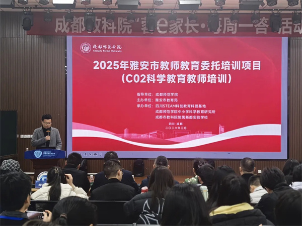 “等闲识得东风面,万紫千红总是春”。在这春意盎然的美好时节,四川省雅安市小学科学骨干教师国培计划到校研修活动于3月13日在成都教科院附属新都实验学校举行。近60位科学骨干教师齐聚知微厅,与成都教科院附属新都实验学校科学教师团队共同开启了一场聚焦科学核心素养、探索课堂提质的深度研修之旅。
