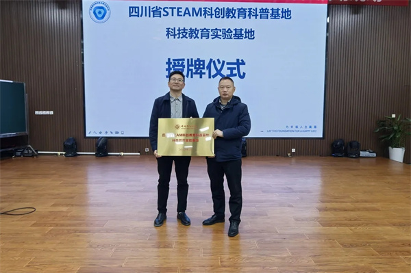 在热烈的掌声中,成都教科院附属新都实验学校与成都师范学院举行授牌仪式。成都师范学院中小学科学教育研究所所长魏羽飞教授代表成都师范学院,正式授予成都教科院附属新都实验学校“四川省STEAM科创教育科普基地”“科技教育实验基地”牌匾。这不仅是一份荣誉,更是一份推动区域科学教育发展的责任。