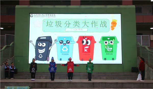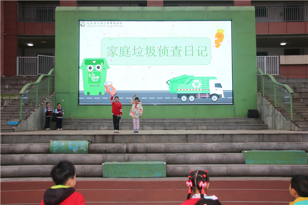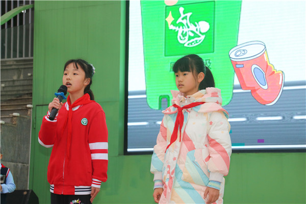 接着,三年级学生代表郭姝含、王雯玥带来《家庭一日垃圾产生记录》分享,通过实地调研的真实数据,让全体师生直观了解到家庭生活垃圾的产生情况,认识到垃圾分类的紧迫性与重要性。